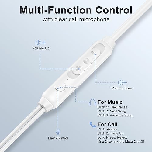 【Quality Material 】: The iphone 15 earphones wired metal plated connector makes strong stable connection. Copper wire core and TPE outer cover allows you running worry-free without fear of pulling the ear buds wire. The wired headphones for iphone 15 pro max is durable and anti-stretching. Giving you a safe and comfortable wearing experience, just plug and play to enjoy your favorite music, perfect for daily commuting, sleeping, hiking, running.