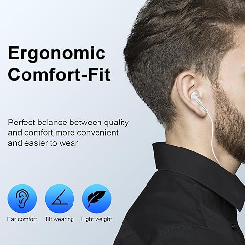 【Ergonomic Semi In ear Design】: The ergonomic usb c wired ear buds for iphone 16e not only just right design for tucking naturally into the ear canal, perfectly fit for the shape of your ears, but also with a ultra-light weight 40g. The highly comfortable feeling will always surround you during running or sleeping with long wearing. The android pixel 9 pro xl earphones wired are equipped with a clip to keep your headphone cord always under control and not messy. This will help you use this iphone 16 wired wired headphones better.