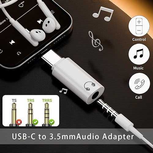 【Wide Compatibility】 USB C to 3.5mm audio adapter is compatible with most Type C devices, compatible for with iPhone 16e/16 Pro Max/16 Pro/16 Plus/15 Pro Max/15 Pro/15 Plus/15, Samsung Galaxy A16/A25/A26/A23/A36/S25/S25 Edge/S25 Ultra/S25 Plus/S24 Ultra/S24FE/S23 Ultra/S23/S23+/S22/S22 Ultra/S22+/S21 Ultra/S21+/S21 /S20 FE/S20 Plus/S20 Ultra/A56/A55/A24/A15/A14 5G, Google Pixel 9 Pro XL/8 Pro/8/7 Pro/7/6a/ 6 Pro/6, iMac, Macbook Pro/Air, Mac mini, PS5, etc.