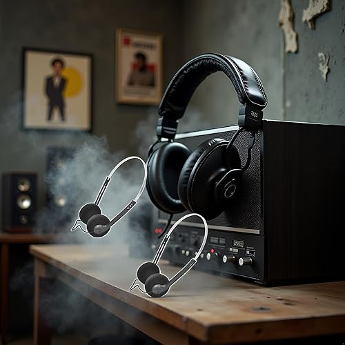 • PACKAGE CONTENTS: Set of 2 retro-style black headphones with matching adjustable headbands for comfortable customized fit