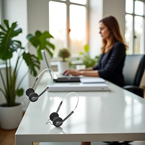 2 Pcs Black Retro On Ear Headphones, Lightweight Portable Headphone with Adjustable Headband, Wired Stereo Headphones, Over-Ear