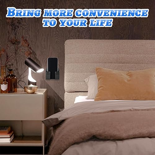 2 Pcs Wall Mount Phone Holder Phone Stand with Self Adhesive Remote Control Storage Box with Data Cable Receiving Hole Non Slip Charger Stand Holder for Kitchen Bedroom Bathroom