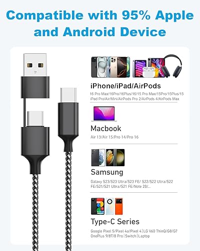Universal Compatibility: Powers iPhone 17 16 15 series, Samsung Galaxy, Google Pixel, iPad Pro/Air, MacBook, and other USB-C devices; supports up to 60W fast charging and data sync