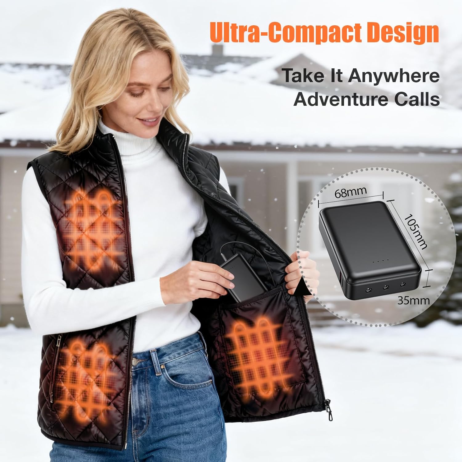 【20000mAh Large Capacity】With a higher conversion rate, it can continuously heat vests for 5-12 hours (5-6 hours high temperature, 8-10 hours medium hours, and 11-13 hours low temperature ).