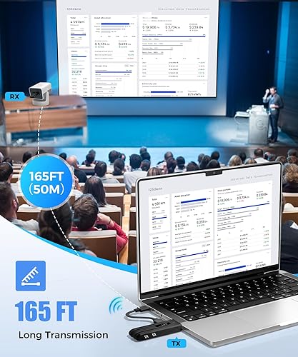 【165FT Strong Transmission Distance】Reach up to 165 FT in open environments, ideal for home theaters, conference rooms, and outdoor activities, providing flexibility for various use scenarios,(Note: Transmission distance and speed may be affected when the product passes through walls or encounters obstacles)