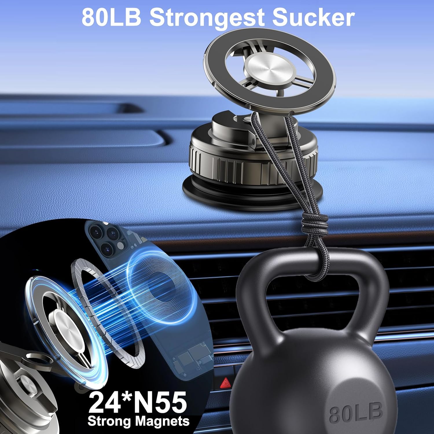 Unparalleled Magnetic Adhesion Ensures Safe Driving--The upgraded version features 24 powerful N52 magnets arranged in a dual-ring configuration. The precision magnetic design provides strong adhesion that stays secure even on bumpy roads, while not interfering with mobile signals to ensure smooth navigation and clear calls.
