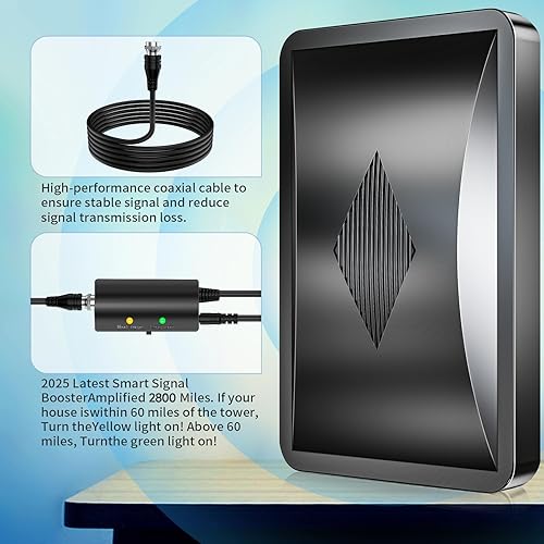 HD TV Antenna Up To 2800+ Miles Range - This long range antenna built-in 2025 newest Smart IC Chip Powerful Amplifier Signal Booster. The technology optimize itselfs signal transmission and against other signals interference. With the performance, antenna up 2800+ Miles range which provide added range and maximum signal reception for more channels even you are far away form broadcast towers. Please note that any adjustment about tv antenna or move the location, please keep rescan the channels