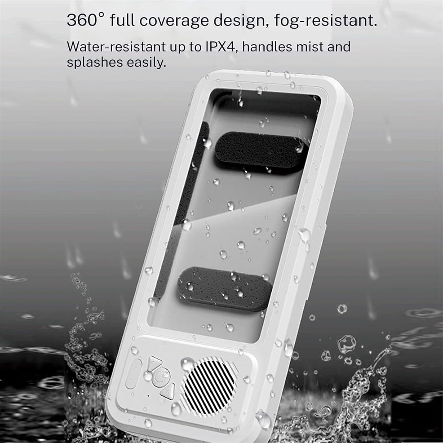 2026 Upgrade Waterproof Phone Holder, Shower Phone Case with Speaker, Hands-Free Entertainment, 360° Rotation, Touch-Friendly Can Be Installed on Any Surface (Pink)(White)