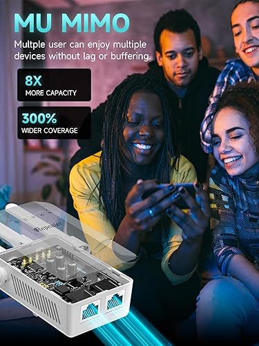 STABILITY AND ULTRA-FAST SPEED: Our latest WiFi extender is powered by a high-performance CPU for fast, stable speeds, and its Intelligent biochip core processor reduces latency and buffering for a seamless online experience. Whether you're streaming HD content, gaming, browsing, or video chatting, you’ll enjoy smooth, uninterrupted connectivity. With the advanced Bionic Chip and four high-gain external antennas, this device ensures fast internet over long distances and reliable wireless access for your whole family.