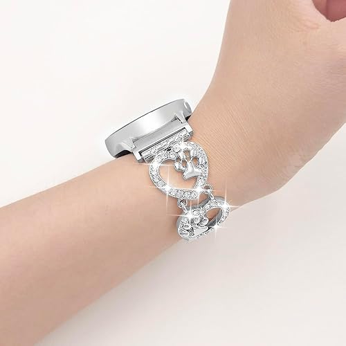 Bling Watch Bands:bling heart shape with cute dog paw design,our original stylish wristband will give your classy smart watch a fashion look and will win a lot compliments for you.Metal bracelet with shiny rhinestones,stylish for dressy your outfit.Watch band for women party,daily wear,work and important occasions.