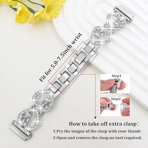 Wristband Adjustable by Hand:adjust the size with your hands,no tool needed,fits for 5.0-7.5inch wrists.4 Removable fold-over clasps,if you have a small wrist you could take off 1-4 piece clasps,simply pry the clasp apart with your thumbnail,no tool needed.A fancy look to your watch,not only looks stylish and bling but also comfortable.