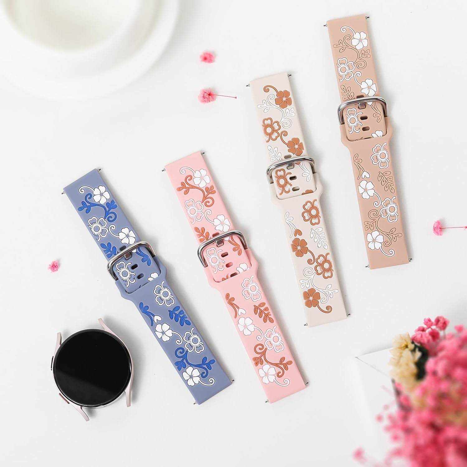 【Premium Soft Silicone】Flower engraved galaxy watch bands for women made from high-quality and very soft smooth lightweight, breathable & skin-friendly silicone materials, preventing skin from irritation rash. Works for all day-workouts and daily life, an ideal choice for sports and dressy activities.