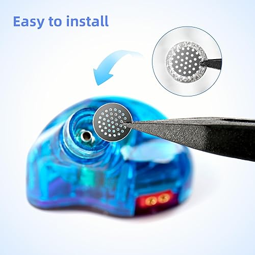 【Easy to Install】 We send it tweezers tool together to help install easy. Replacement Process: 1. Take off the old dust mesh by tweezers and clean the earbud tube. 2. This earbuds filter mesh already had glue on it, pick off the dust mesh by tweezers. 3. Stick dust mesh on your iems voice outlet (earbuds tube), then press several times