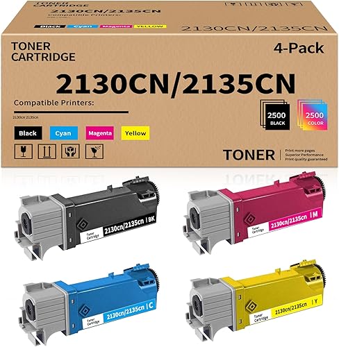 Package Contents: 5 Pack High Yield 2130cn/2135cn Toner Cartridge Compatible Replacement for Dell 2130cn/2135cn 330-1436 330-1437 330-1433 330-1438 ( 2 Black + 1 Cyan +1 Magenta +1 Yellow )