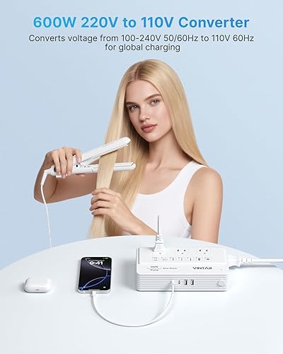 100% Pure Sine Wave Converter: Our step down converter not only converts 220-240V voltage into stable 110V pure sine wave, but also adjusts frequency from 50/60Hz to 60Hz, power Any U.S. Appliance (100-125V, 0-600W) Abroad in 220-250V Countries. Safe for sensitive and high-end devices like CPAP machines, nebulizers, and laptops. Unlike others with modified sine wave that can damage devices over time, VINTAR 220V to 110V voltage converter delivers clean, reliable power every time