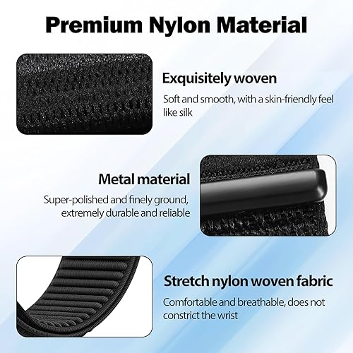 Skin-friendly Nylon Material: This adjustable woven strap is made of highly elastic nylon material, which is soft, breathable, lightweight and durable. It provides you with the maximum comfort and breathability, enhancing the overall wearing experience. It is highly suitable for fitness, running, cycling and daily wear, and can be worn comfortably throughout the day in various occasions