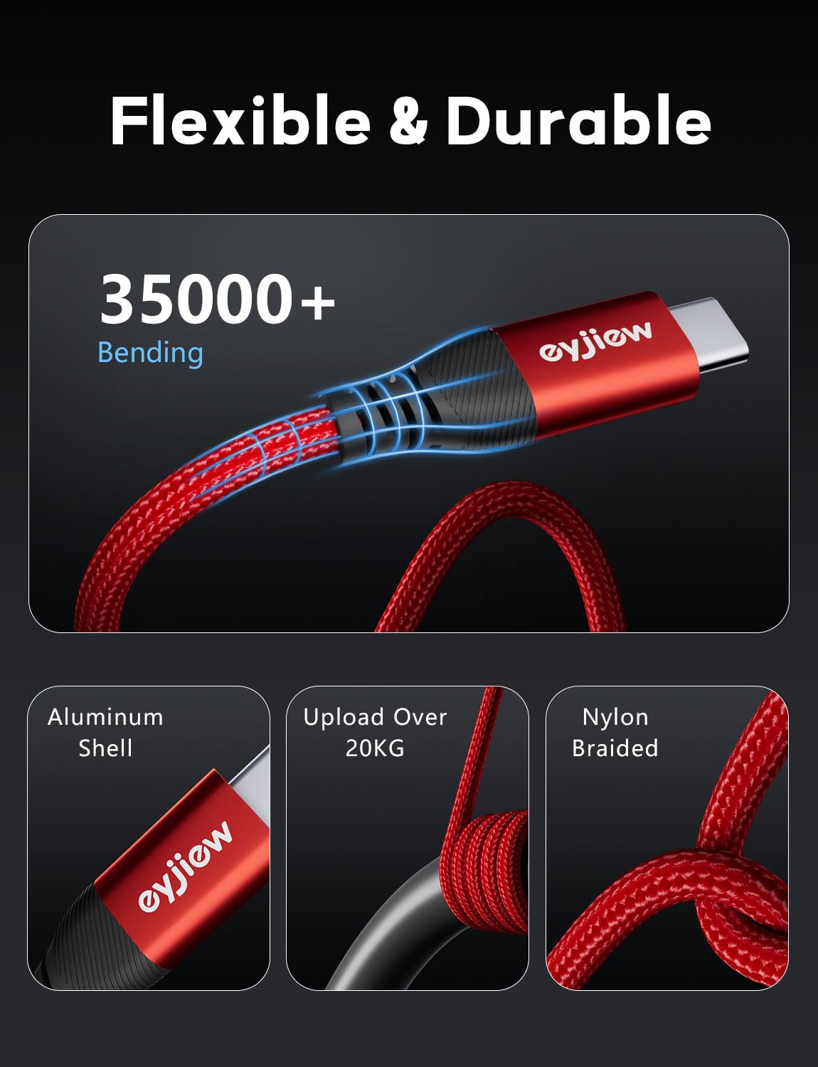 Providing Stable Charging: eyjiew 10 ft usb c cable fast charging uses an upgraded E-Mark 2.0 chip that intelligently matches current, ensuring stable power transmission and preventing overheating or overcharging