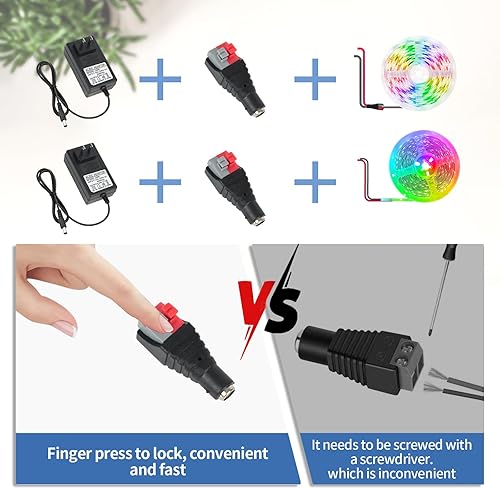 Included Components: 2 x DC push-to-type LED connectors, 2 × 24V 2A AC Adapter