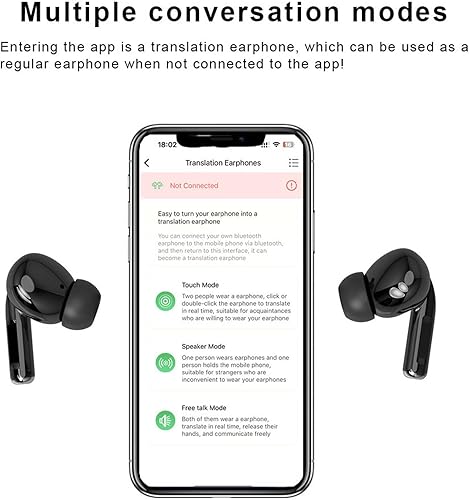 EFFICIENT AND CONVENIENT CONNECTION: Language translator earbuds use the latest 5 technology and can transmit up to 15 meters, allowing you to move more freely. Whether connected to your phone or tablet, you can pair quickly, enjoy stable sound transmission, and listen to music or take calls without delay