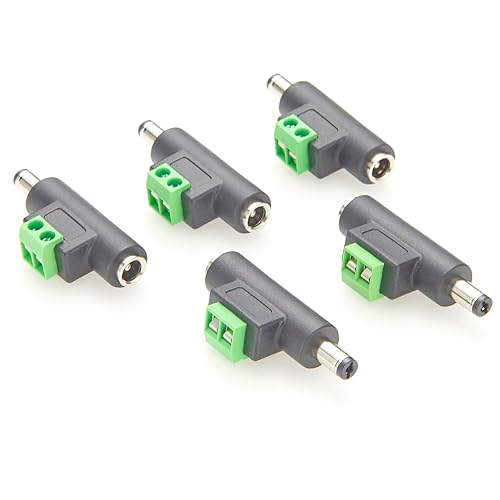 2A 50V DC 5.5 * 2.1mm Male to Female Adapter with Screw Terminal Block DC Power Connector for CCTV Security Camera, LED Strip, Routers(5PCS)