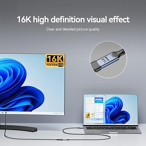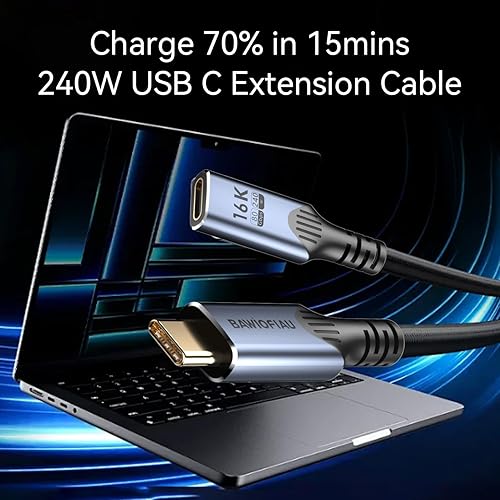 16K & 8K Visual Excellence: This USB-C extension cable (also a USB Type-C extension cable) delivers single 16K@60Hz or dual 8K@60Hz displays, ensuring crisp visuals for pro editing, 3D work, and gaming. Its gold-plated connectors and triple-shielded build cut interference, maintaining studio-grade color and zero signal loss—ideal for the USB c extension needs of power users