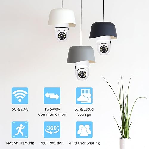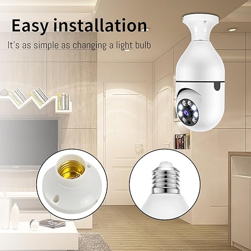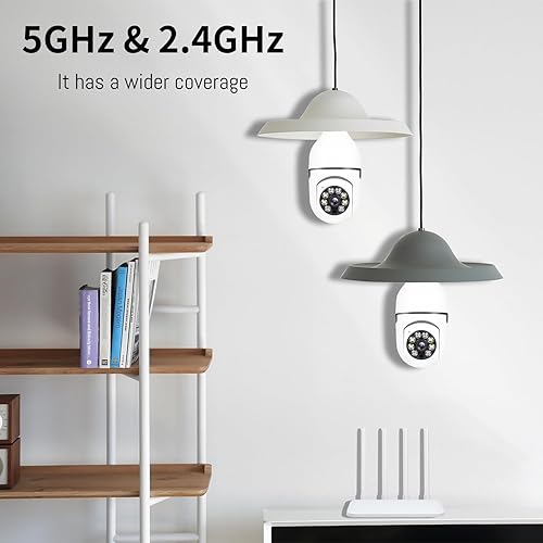 5G & 2.4G Dual Band WiFi:This latest 5G&2.4G dual-band security cameras wireless outdoor/indoor camera light bulb camera have stronger signal reception,higher stability,longer distance to use, compared to traditional 2.4G single-band lightbulb security camera.This WIFI bulb camera needs to be inserted into E27/E26 light socket (110V~240V).This light socket security camera also comes with an adapter, just plug it into a power source for easy use.Easily use the home security cameras.