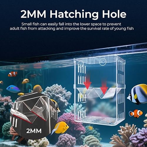 2 MM HATCHING HOLES & REMOVABLE GRATE: Precision-cut holes let newborn fry fall into the lower chamber for protection; the slotted grate keeps food residues and waste out.