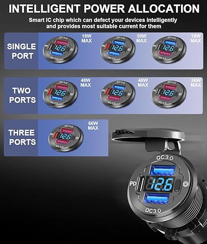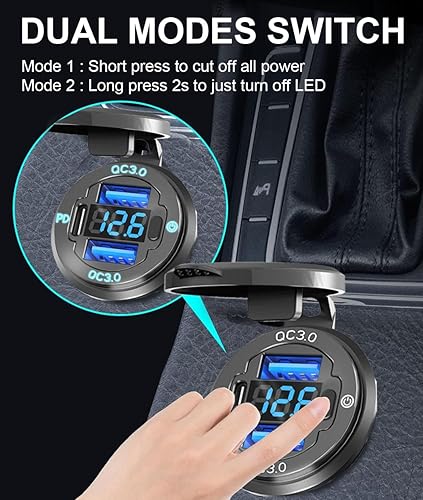 Real-Time Voltage Monitoring - This 12v usb outlet c built-in blue LED voltage meter automatically tracks 12V-24V vehicle battery health (11-16V range). Prevent roadside emergencies by monitoring electrical systems through your car usb port while charging devices