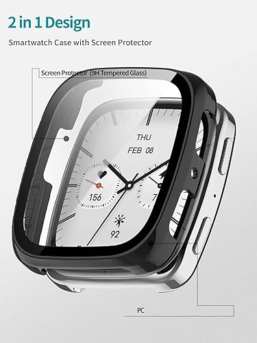 【2 In 1 Design】Integrated with hard PC shell and 9H hardness tempered glass screen protector.All Around protects your Smartwatch from scratch, bumps and accidental drops.
