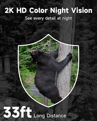 2K High Resolution & Color Night Vision: Equipped with a wide angle 130° View & 2K high-definition resolution, the outside camera wireless has two options for night vision: full-color mode and infrared mode with a 33ft visible range. Whether it is night or day, the outdoor surveillance camera will provide a clear wide video of any area you wish to monitor