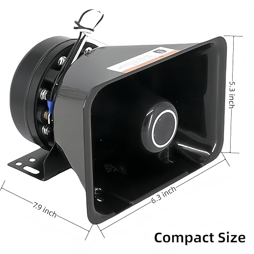 Compact Size: PA Horn Speaker measures 7.9" W x 6.3" H x 5.3" D, compact enough to fit vehicles of all sizes, from emergency vehicles to personal vehicles