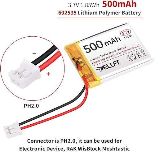 Widely Application: Equipped with PH2.0 plug, these 500mAh battery can be used for MP3, MP4, wireless headset, GPS tracker, baby monitor, game console, smart watch, surveillance device, POS, car recorder, speaker, VR glasses, beauty device, pet tracker, visual doorbell, etc