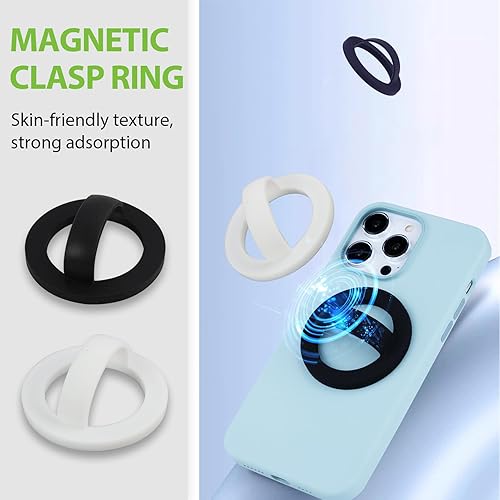 2PCS Magnetic Silicone Phone Grip Holder, Loop Stand and Finger Strap, Compatible with MagSafe for iPhone 16/15/14/13/12 Series, Easy Install and Remove(Black + White)(black&white)