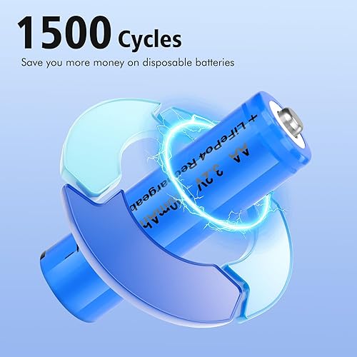 Batteries have up to 1500 cycles of battery life, which saves you more money on disposable batteries, so you no longer have to worry about replacing batteries.