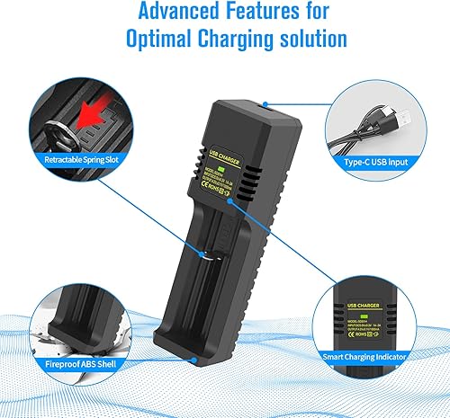 3.7V 18650 Li-ion Battery Charger, USB-C Single Slot Battery Charger for 26650 21700 18650 18500 18350 16650 Rechargeable Batteries
