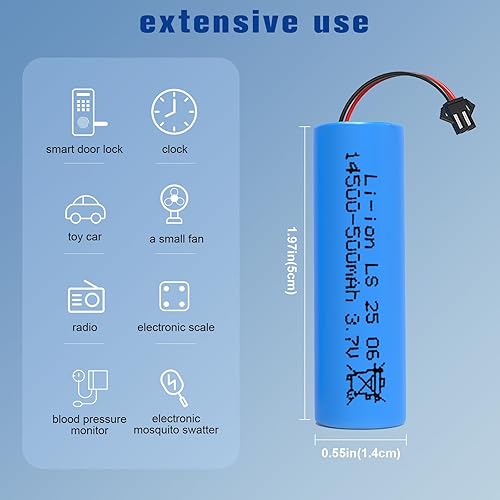 3.7V 2000mAh Lithium-ion Rechargeable Battery Pack, 3.7 Volt li-ion Batteries NO Connector, 18650 Rechargeable Battery Pack for Flashlights, Electric Toys, DIY Product(SM CONNECTOR,zuein 14500-500mAh)