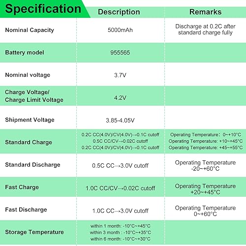 High Capacity Performance: Our 5000mAh LiPo battery (model 955565) delivers exceptional power and longevity for your devices, providing reliable energy for all your projects and ensuring optimal performance in every use case.