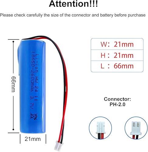 Comment on "3.7V Battery 2600mAh High-Performance 3.7Volt Rechargeable Batteries with PH2.0/2P Connector for DIY Electronics Products, Flashlights, DIY Battery Pack, Electric Toys ect, 1Pack"