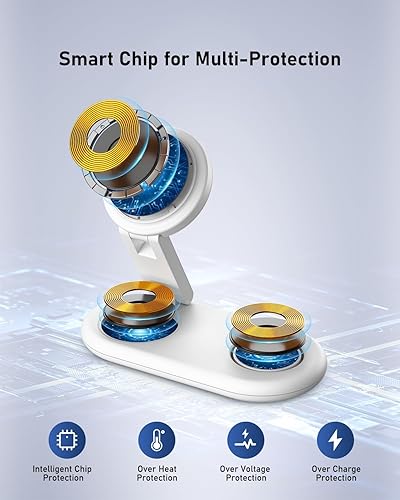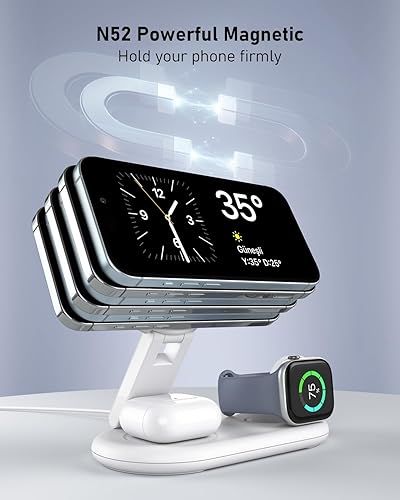 Universal Compatibility: This 3 in 1 magnetic wireless charger stand compatible with iPhone 17/16/15/14/13/12 series.Also compatible with iWatch Ultra/10/9/8/7/6/5/4/3/2/SE,AirPods Pro/4/3/2(with wireless charging case).Perfect charging device for apple fans