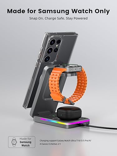 Compatibility - Designed for the latest Z Fold7/Flip7. Samsung S Series/Note Series/Z Flip Series (Requires Magsafe case/ring), iPhone 16/15/14/13/12 Series and Specifically work for Galaxy Watch8/Galaxy Watch 8 Classic/Galaxy Watch Ultra/7/6/6 Classic/5/5 Pro/4/4 Classic/3 and Active 1/2. Not compatible with other watch models. Also works with Galaxy Buds/Pro/Live and earbuds with wireless charging cases