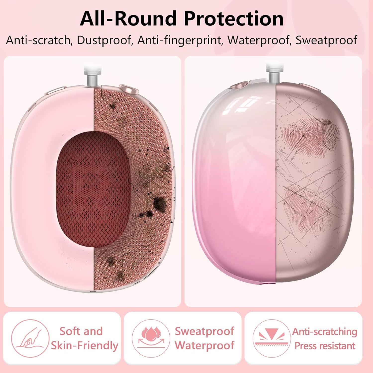 All-round Protection: This protective case is made of soft silicone, which is shockproof and scratch-proof, easy to clean, and provides comprehensive protection for Apple AirPods Max earphones from scratches, accidental drops, collisions and impacts.