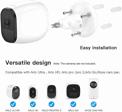 【Unique design】This strong wall or ceiling mount bracket is designed for ARLO HD/ARLO PRO/ARLO PRO2/ARLO GO/ARLO ULTRA/WYZE CAM PAN. (Note: camera is not included)