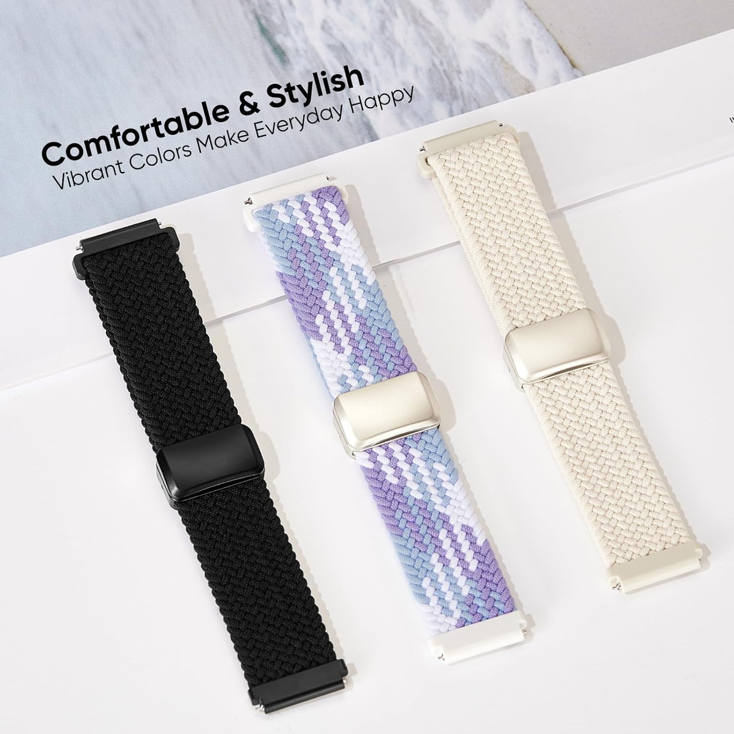 Comment on "3 Pack Braided Bands Compatible with Samsung Galaxy Watch 7 6 4 5 FE Band 44mm 40mm/Galaxy Watch 6 4 Classic 42mm 46mm 43mm 47mm/Watch 5 Pro Band 45mm/Active 2, 20mm Stretchy Nylon Sport Band(Black/Violet/Starlight,20mm)"