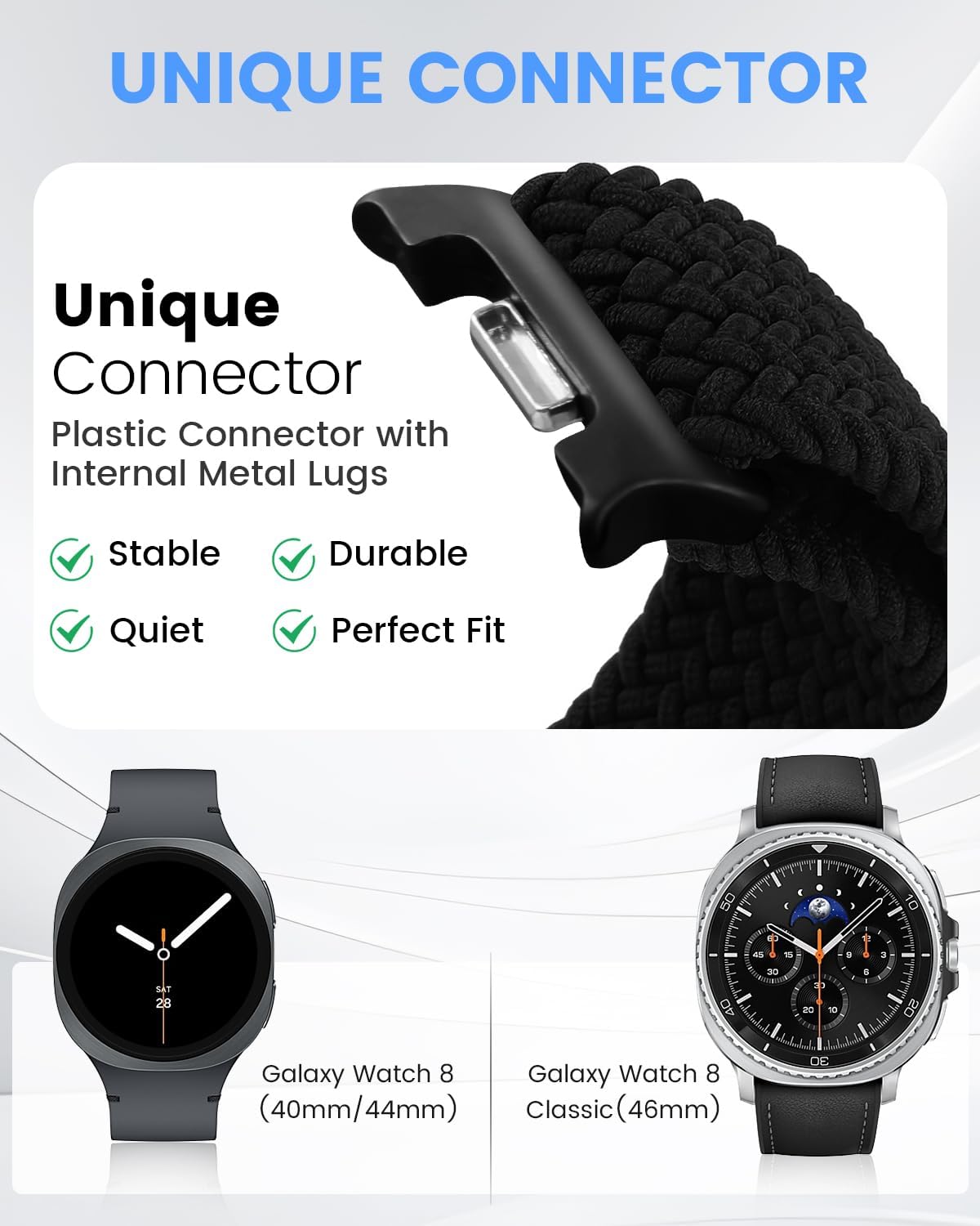 Comment on "3 Pack Elastic Braided Band Compatible with Samsung Galaxy Watch 8 Band 40mm 44mm/Galaxy Watch 8 Classic 46mm, Stretchy Nylon Solo Loop Sport Strap for Samsung Watch 8/8 Classic Bands for Women Men(Rainbow+Cowboy+Camouflage)"