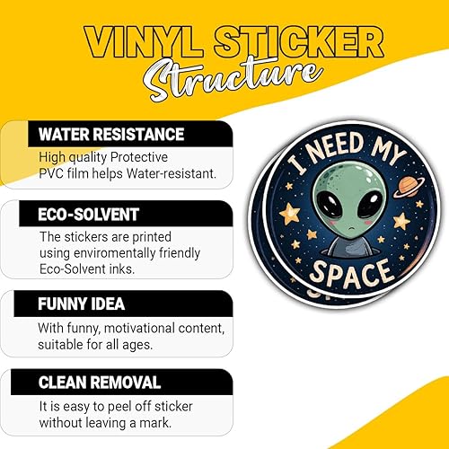 (3 Pcs) Alien I Need My Space Sticker – Funny Alien Quote Vinyl Decal Waterproof for Laptop, Water Bottle, Tumbler, Car – Gift for Alien Fans, Humor Lovers – 3 Inch. Search us: Alien I Need My Space Sticker; Funny Alien Quote Sticker; Alien Humor Vinyl Decal; I Need My Space Alien Sticker; Alien Quote Vinyl Decal; Funny Alien Meme Sticker for Water Bottle; I Need My Space Quote Sticker; Alien Meme for Tumbler; Alien Sticker for Laptop; I Need My Space Vinyl Decal for Car; Funny Alien Sticker for Friends; Alien Quote Sticker for Water Bottle; Alien Humor Sticker for Tumbler; I Need My Space Sticker for Car; Alien Sticker for Laptop