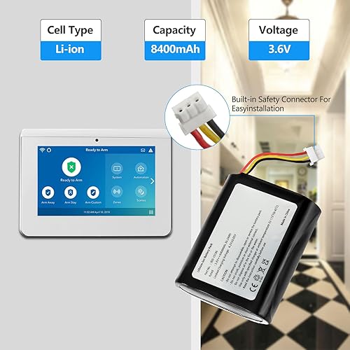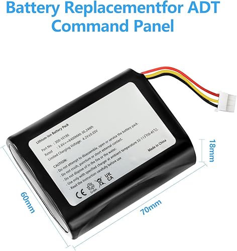 【Important Notice】Check compatibility before purchase.High-quality battery replacement for ADT security system (part #300-10186). Built-in safety connector for easy DIY install.Charge for over 24 hours after installation to ensure optimal performance
