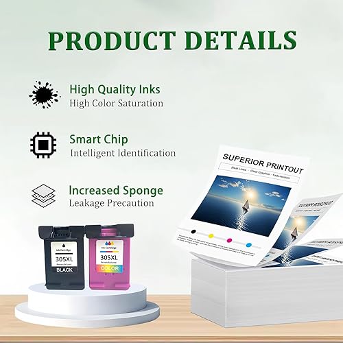 Excellent Performance: Achieve crisp, vibrant prints with our 305XL ink cartridge. Enjoy sharp text, rich colors, and reliable performance, ensuring smooth operation and fewer paper jams for an enhanced printing experience