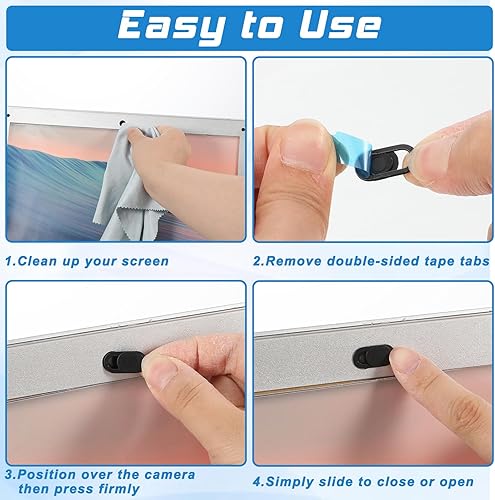 【Easy Installation】The computer camera cover slide is simple to install. Just peel and stick the webcam cover for laptop and cell phone camera cover onto your device, ensuring a secure fit without leaving residue.