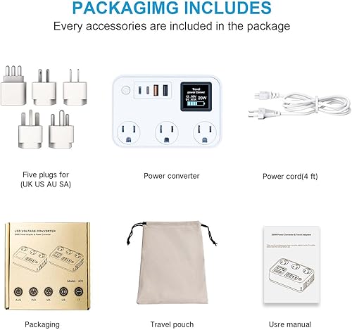 WHAT YOU WILL GET -- Universal Travel Converter, including 3.3ft detachable power cord with 5 international outlets, storage bag, user manual . If you have any questions, please feel free to contact us. We endeavor to provide our customers with the best quality products and the best service.