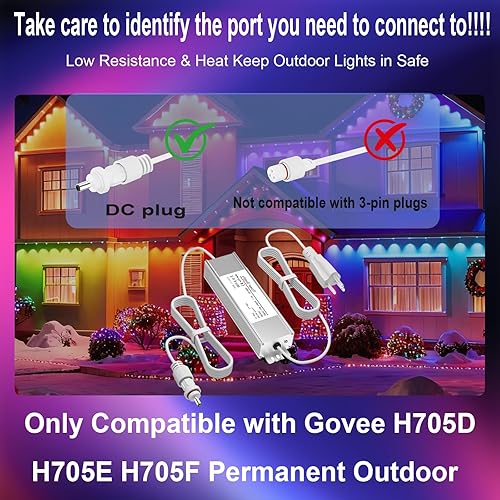 Important Notice: This charger is exclusively compatible with Govee Permanent Outdoor Series 2 models H705D, H705E, and H705F. It is not compatible with other models. Please verify compatibility before purchase.
